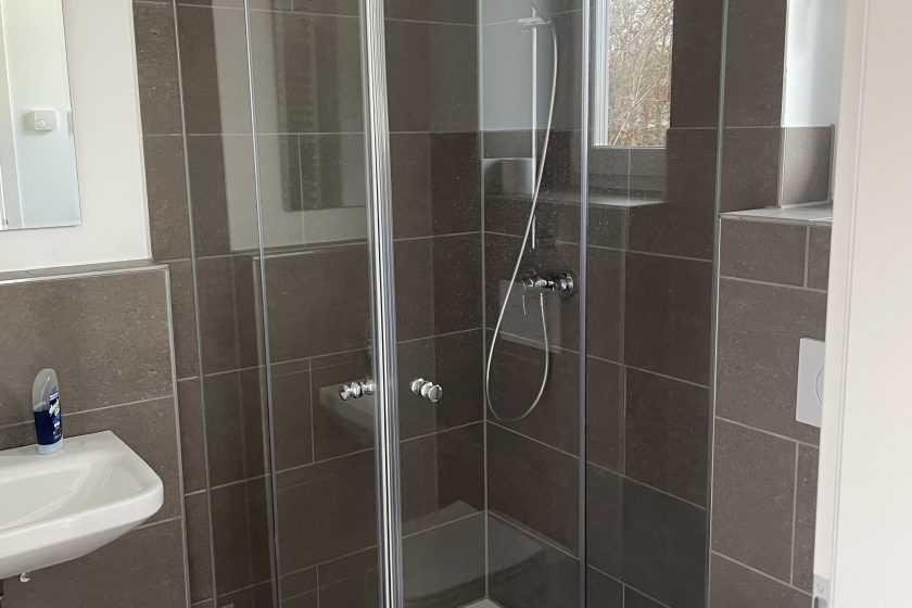 Zum komfortablen Interieur gehören eine Fußbodenheizung in allen Räumen sowie ein barrierearmes Duschbad mit Handtuchtrockner. Im Haupthaus sorgt eine kontrollierte Wohnraumbelüftung für ein angenehmes Raumklima. Hier wurden zudem Echtholzfenster mit einer Dreifachverglasung verbaut. Das Gebäude wird über eine klimaschonende Holzpelletsheizung erwärmt. Alle Wohnungen im Haus haben eine Gegensprechanlage, die bei Bedarf die Klingel stumm schaltet.