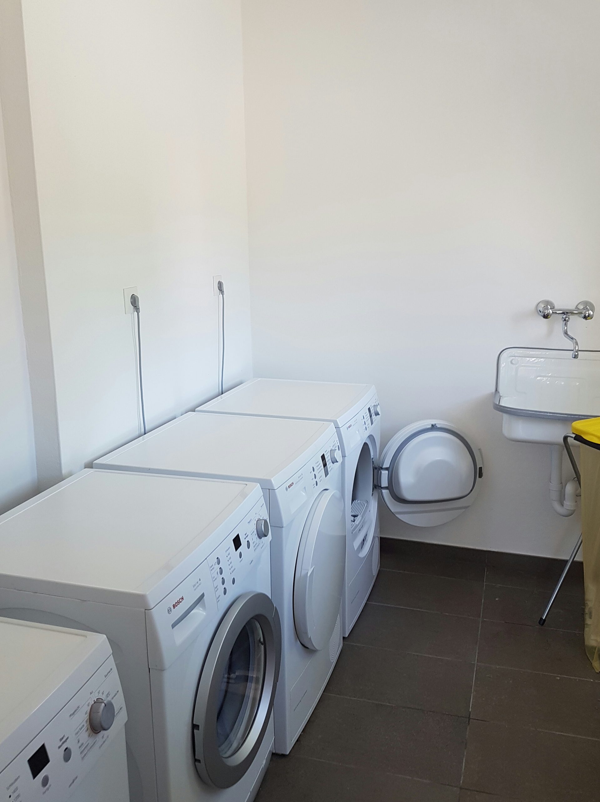 Jede der voll eingerichteten Küchenzeilen hat eine Mikrowelle sowie ein integriertes 3-Sterne-Gefrierfach. Zum Teil verfügen die Küchen zusätzlich über eine Spülmaschine. Der Boden ist mit strapazierfähigem PVC in moderner Holzoptik verlegt. Die Wohnungen haben zum größten Teil einen Balkon oder eine Terrasse. Den Bewohnern stehen außerdem Waschmaschinen, Trockner sowie ein Abstellraum für Fahrräder zur freien Nutzung.