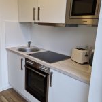 Jede der voll eingerichteten Küchenzeilen hat eine Mikrowelle sowie ein integriertes 3-Sterne-Gefrierfach. Zum Teil verfügen die Küchen zusätzlich über eine Spülmaschine. Der Boden ist mit strapazierfähigem PVC in moderner Holzoptik verlegt. Die Wohnungen haben zum größten Teil einen Balkon oder eine Terrasse. Den Bewohnern stehen außerdem Waschmaschinen, Trockner sowie ein Abstellraum für Fahrräder zur freien Nutzung.
