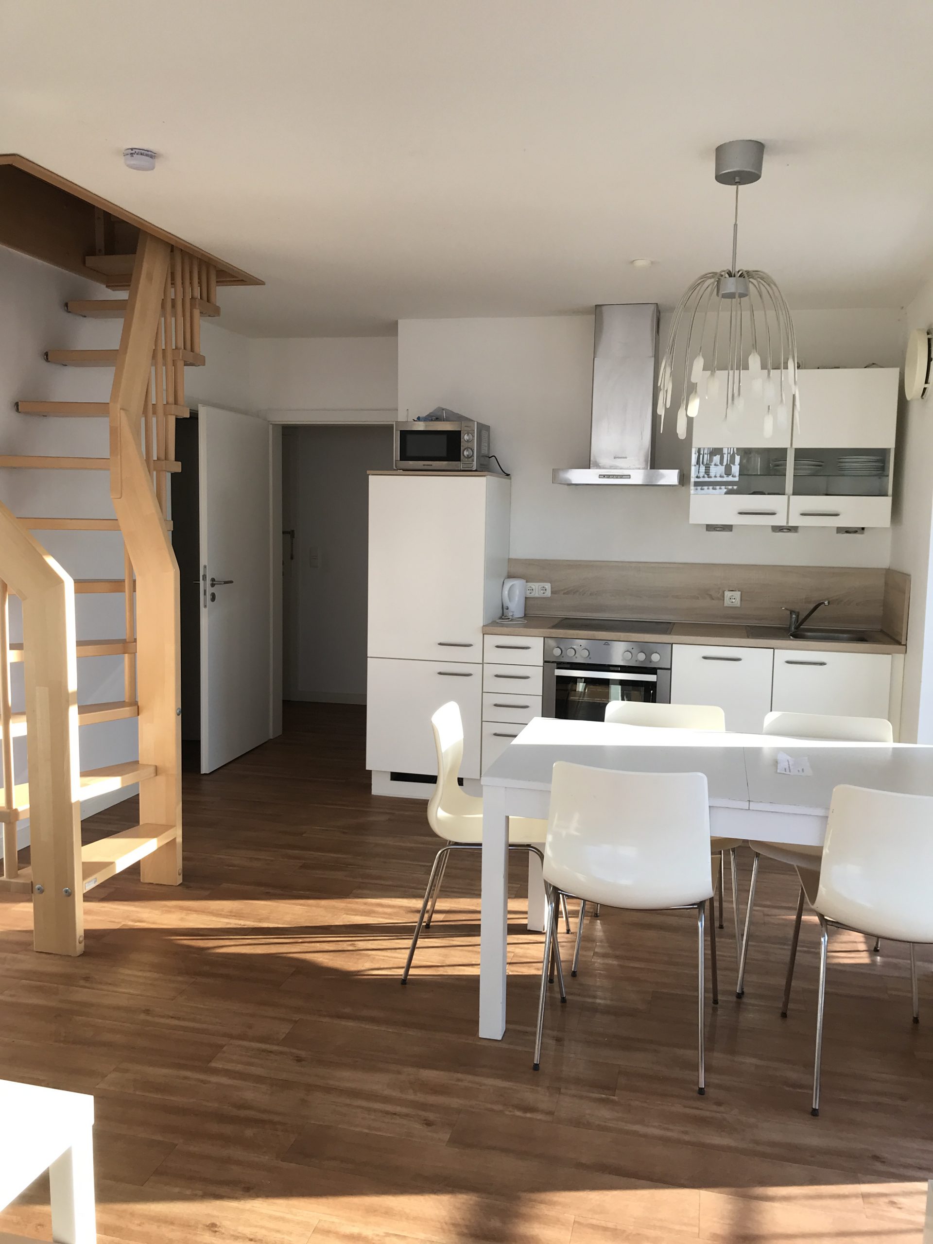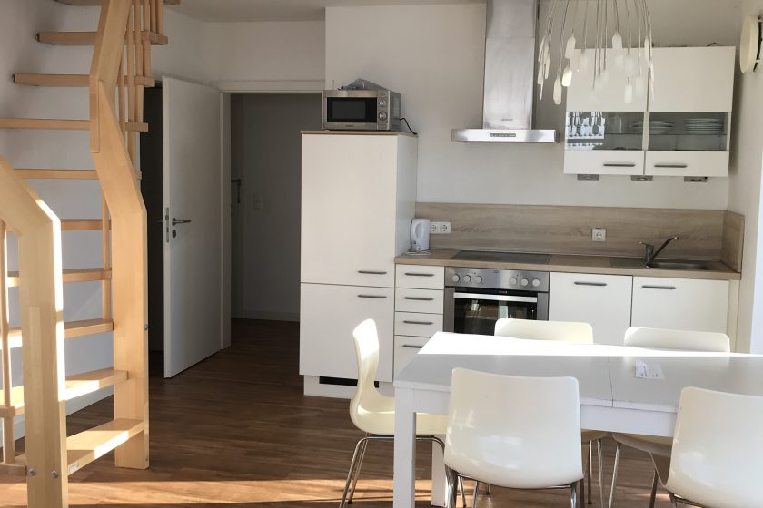 Jede Wohnung hat ein Badezimmer mit Dusche, Pantry mit kompletter Küchenausstattung und Möbelierung inkl. TV und Internetanschluss. Waschmaschine und Trockner stehen Ihnen auf dem Hof kostenfrei zur Verfügung. Bettwäsche und Handtücher können gebucht werden.